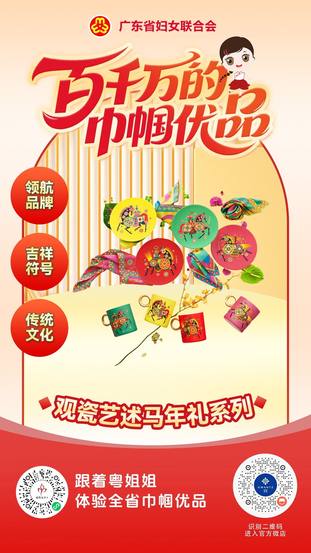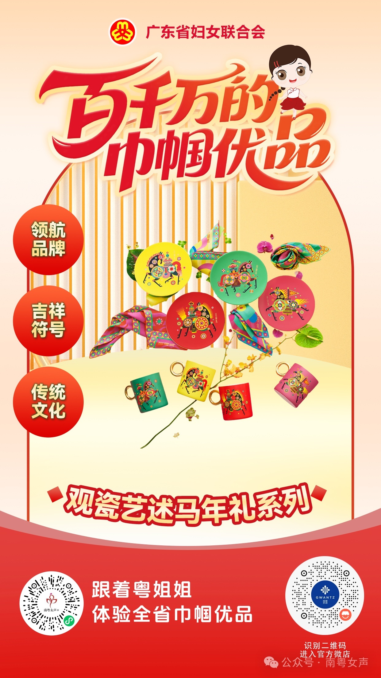 【珠海 巾帼优品:不雅瓷艺述 马年礼系列】不雅瓷艺述马年礼系列,以陶瓷礼盘、丝巾、摆件、杯具等为载体,灵感源自传统文化“甲马”与“年画”,通过送福、招财、沉静、报喜四匹神骏,重构祯祥记号的当代抒发。品牌以野心运转,整合优质资源打造艺术化日用陶瓷,屡获外洋大奖。首创东谈主宁晓琴女士深耕陶瓷艺术,UEDBET中国官方网站在品牌展厅设立“妇女之家”,开展陶瓷培训与换取,勤快于文化传承和妇女发展赋能。扫一扫海报右侧二维码,UEDBET官网app 插足官方微店购买。【开栏的话】“百千万工程”本质以来,雄壮粤姐姐积极投身县域经济主阵脚、绿好意思生态第一线、产业升级最前沿,以科技赋能当代农业发展,以创意激活农文旅产业和会,以智造股东特点产业升级,打造了一批独具特点的好意思食、好意思居与好意思物,助力广东县域经济迸发新活力、助推和好意思乡村怒放新光彩。广东省妇联相干南边日报、南边+、南边网推出“百千万的巾帼优品”栏目,以轻海报形势推介全省各地“巾帼优品”,助力赔本、赋能发展。和粤姐姐沿途看见她力量,撑抓她创造!